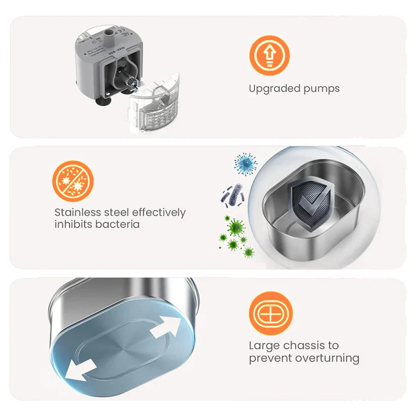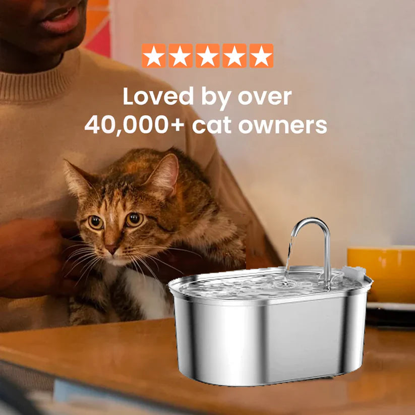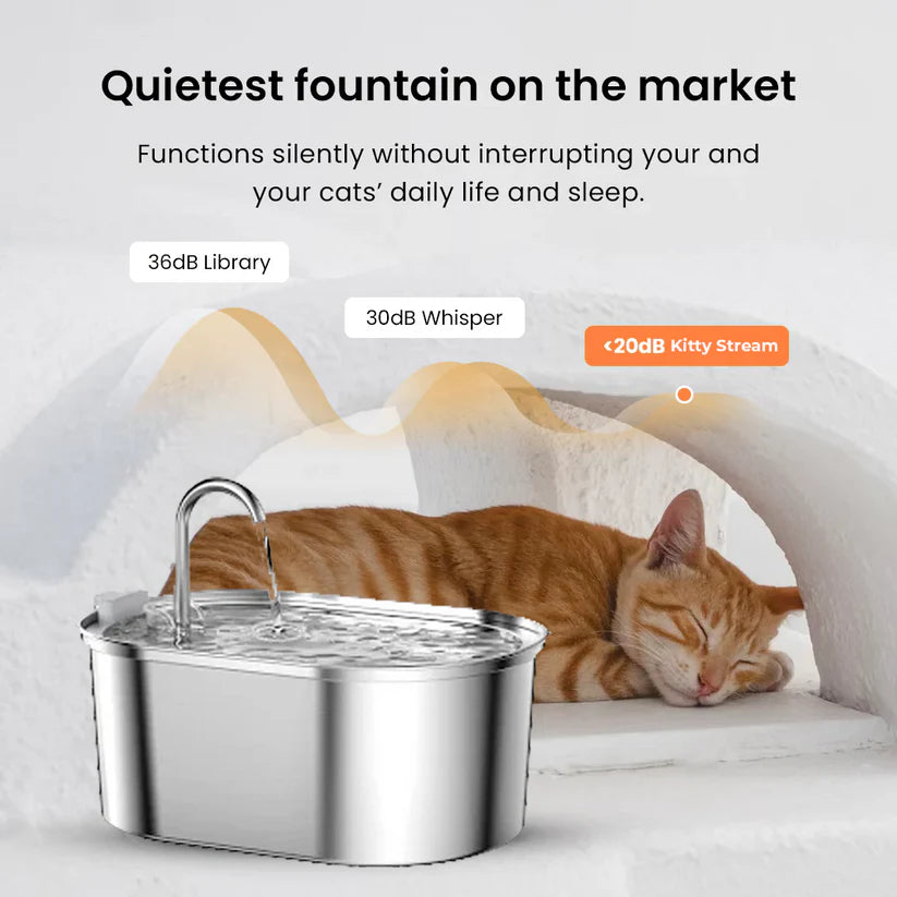 Crafted from hygienic stainless steel and powered by an ultra-quiet pump, KittyStream™ Wired creates a calm, stress-free drinking experience that encourages healthy hydration. Its reliable wired design makes it ideal for fixed locations, offering uninterrupted performance with minimal maintenance.